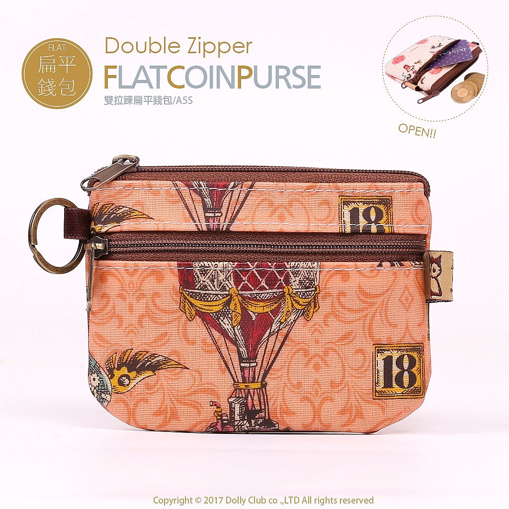 雙拉鍊扁零包-A5S-貓咪的蒸氣龐克-紅-089